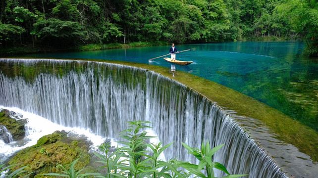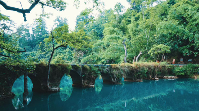 小七孔景区是一段峡谷里的河流,广告词是“张家界的山,九寨沟的水”,这广告词确实不能算是虚假,但应该加一句“低配版”。幸而游人稀少,山水因宁静而生辉,住在景区里面就更好了。如果不怕亲水,还可以试试乘船游览,有乘客喊船夫:“师傅,介绍下两岸的风景嘛。” 船夫回答:“你也有一双眼睛,你自己看,你看它像什么,它就是什么嘛!”