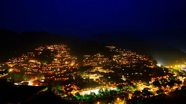 我对西江千户苗寨的印象很差,并不仅仅因为它是个人造景点。“破四旧”之后,全国人文景点,何处不是人造呢?但人造水平高下,不啻天壤之别。扬州瘦西湖、浙江乌镇,都是人造景点的典范之作,西江千户苗寨则不过是个处处皆新,事事皆俗的大型KTV酒吧街而已。在观景台拍了一张“大鹏展翅”,也就算是来过了: