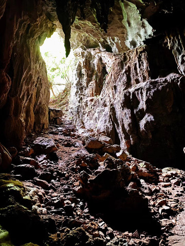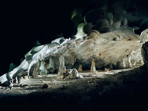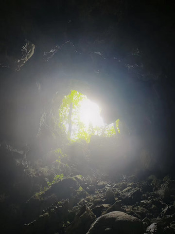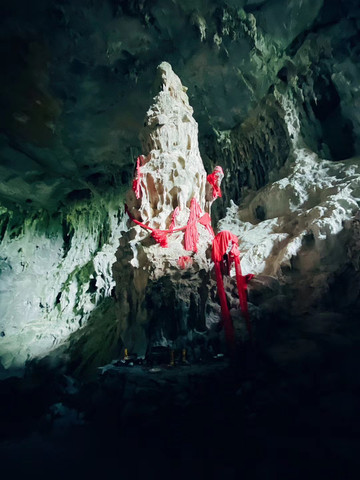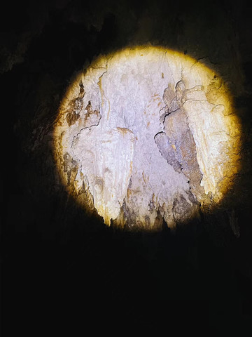 当天是工作日,洞里只有我一人,沿着木栈道前行,走到洞穴最深处,熄灭手电,融化在绝对寂静和绝对黑暗中,不思不想,不听不看,偶尔有蝙蝠无声飞过头顶,水珠从洞顶滴在身上,带来刻骨凉意。不知道过了多久,洞外隐隐有几个小姑娘在说话,大概是来了第二波游客,我还是关着手电,沿着木栈道轻手轻脚往外走,对面游客的手电光照到我,不知为何突然从黑暗中走出一个人来,吓得一阵尖叫。