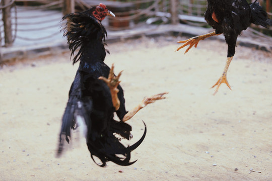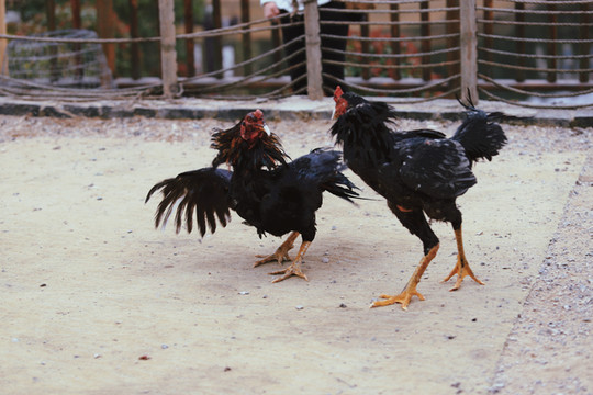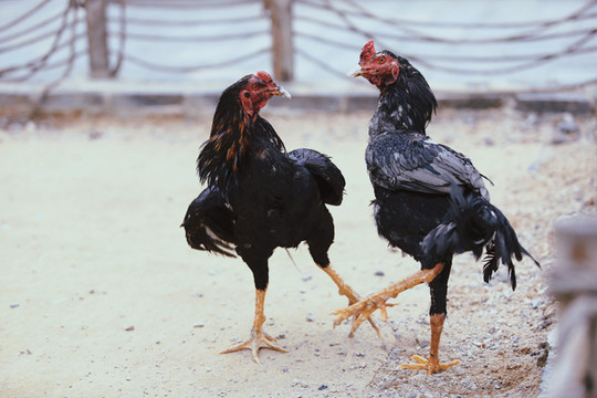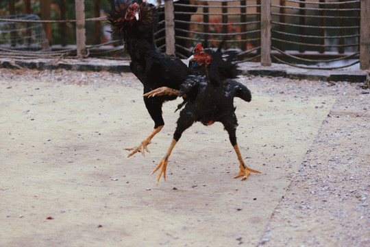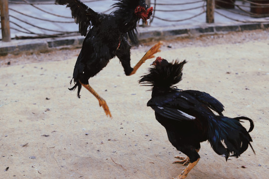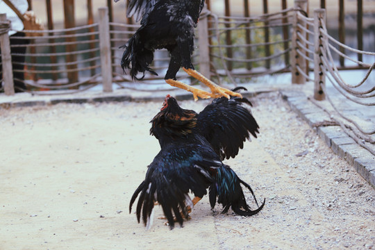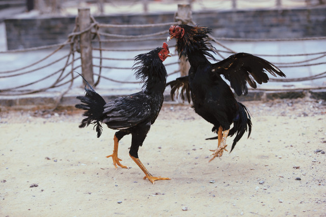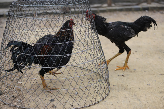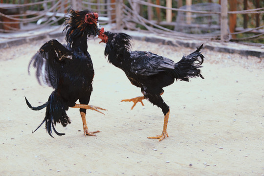 斗鸡所用之鸡,可不是我们平常的家养鸡,而是一种当地专门驯养出来的“斗鸡”。“斗鸡”体长,头小,耳小,眼窝大且深,嘴尖且利,颈粗而长,胸宽,小腿粗而方,爪大而尖,羽少而薄、色亮,这些特征造就了斗鸡天生就是争斗的好手。