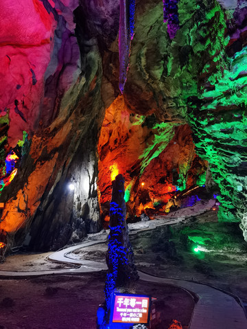 位于汤粑 石林 的半坡上天钟洞,洞长约700多米,洞厅高大,廓道迂回。钙化堆积物不算很发育,但形态逼真生动,且洞内道路平坦,可观性强。洞内钟乳石多酷肖动物,有鳄鱼厅、金鸡厅、百兽厅和犀牛厅等。洞中有一钟乳如铜钟倒扣于地,钟身遍布细石乳,宛似蝌蚪文。人们说,这是兽界的“法律条文”,故钟名“天钟”,洞名亦由此而得。