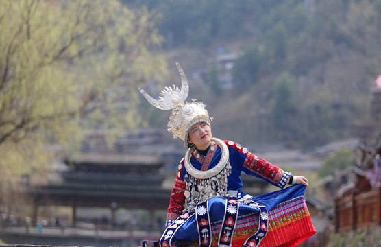 在小镇上也有好多出租苗服、汉服的商家,苗服价格30元/小时,汉服50元/小时。在这古色古香的小镇上穿上民族服装才会入乡随俗。