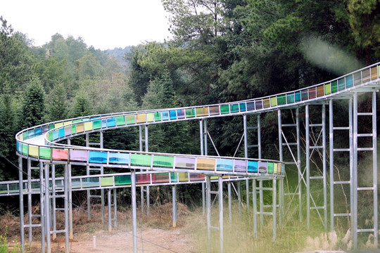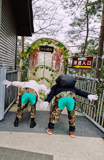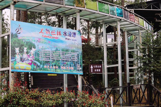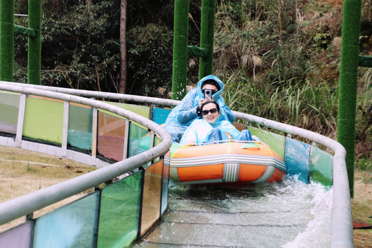 玻璃桥不长大概百米左右,尽头就是旱滑和水滑道