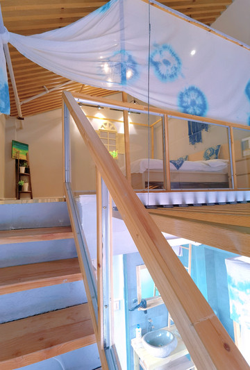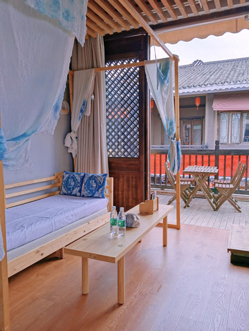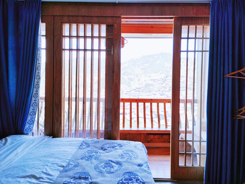 我订的客栈在苗年广场旁边,客栈分湖景房和街景房,我的是街景房从二楼的阳台上可以看到苗年广场,如果广场上有表演这里是个不错的观赏点。客栈是复式设计卧室在楼上。