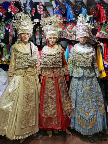 街道两边俨然成了不同风格的苗族服饰展示舞台