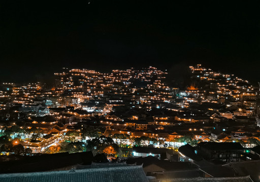小镇的夜晚灯火通明,逢双数月份锦鸡广场上还伴有篝火晚会,劳累一天的人们在广场翩翩起舞