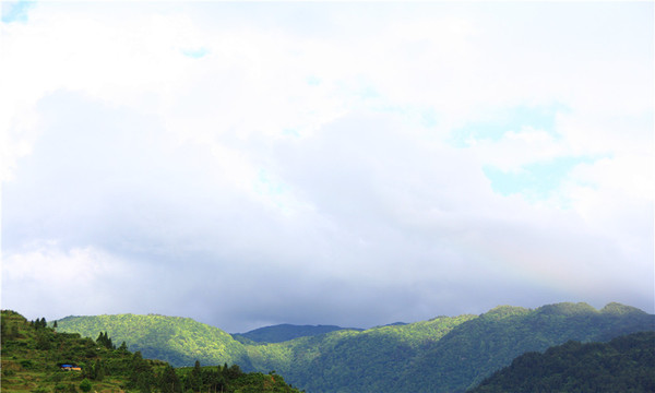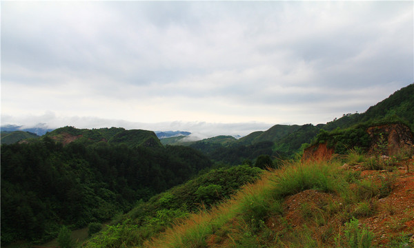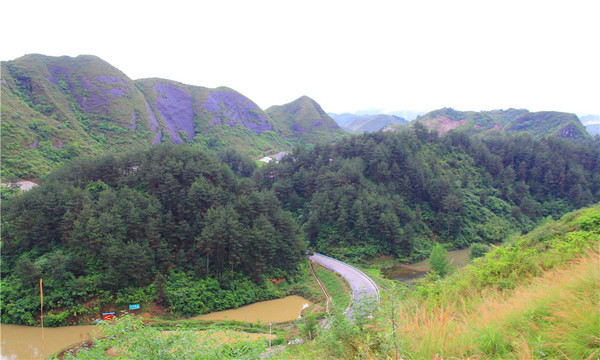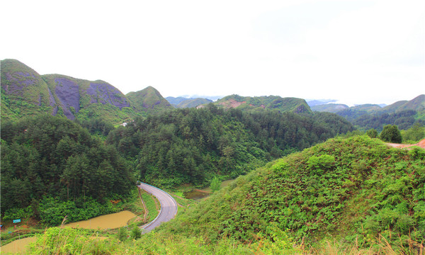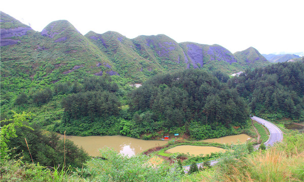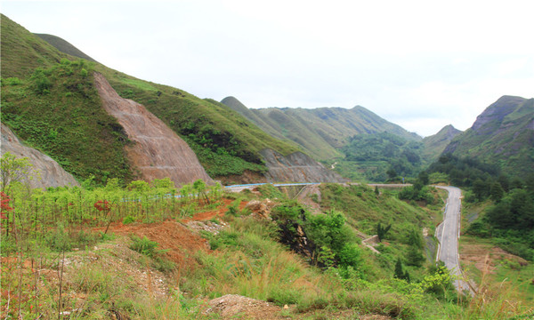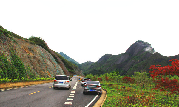 沿途一路的山山水水,山水相连,连绵起伏。山腰盘旋的那曲折蜿蜒的公路如缕缕飘带缠绕在那青山之中,成为一道独特亮丽的风景。朦胧的远山,笼罩着一层轻纱,影影绰绰,在飘渺的云烟中忽远忽近,若即若离,看到此场景,只想感慨一句:“此景只应天上有,人间能得几回闻