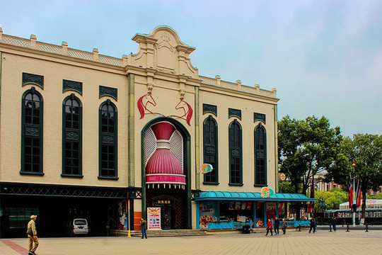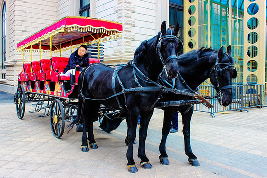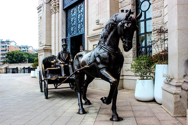 从售票中心出来,侧门旁有一座铜质马车雕塑,游客们争先恐后坐上去拍照,搭配欧式建筑真的让人分不清楚是在国内还是在国外。