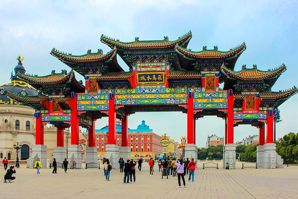 海澜飞马水城,位于江苏省江阴市新桥镇,占地面积1000亩,由海澜集团倾力十年精心打造,集马术训练、马术表演、马术赛事、马文化展示及休闲度假为一体的马文化旅游综合体。一进门就看到了一个超大的中式气派的牌坊。