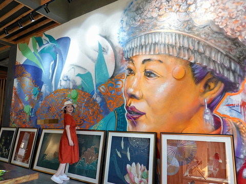在舞水云台,传承的苗绣与当代的时尚相融合,首饰、衣着、室内陈设等方方面面的苗族审美作品应运而生,让人应接不暇,驻足观赏。