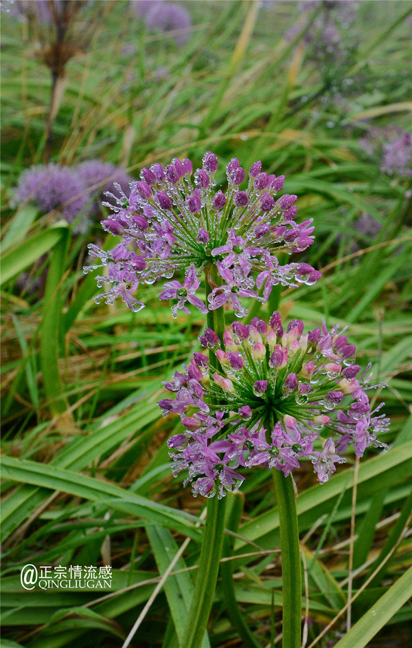 上到山顶,早上的韭菜花雨露晶莹,亮晶晶静悄悄的开放。