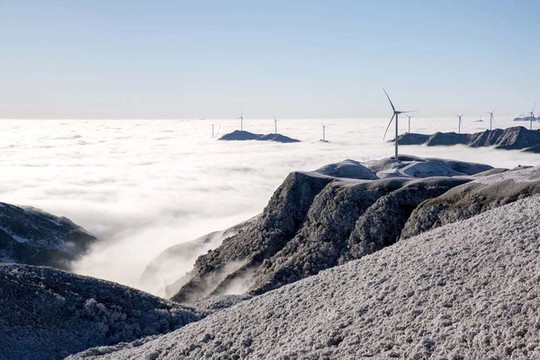 工作人员告诉我们,冬天在韭菜坪还可以看到云海和风车(风力发电)共舞的场景.。壮观又美丽。