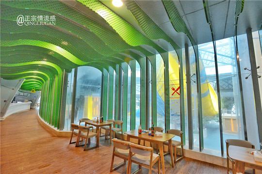 度假区配套了造型清新美观又充满时尚动感的景观餐厅,可以一边用餐,一边欣赏水乐园里的欢乐刺激。