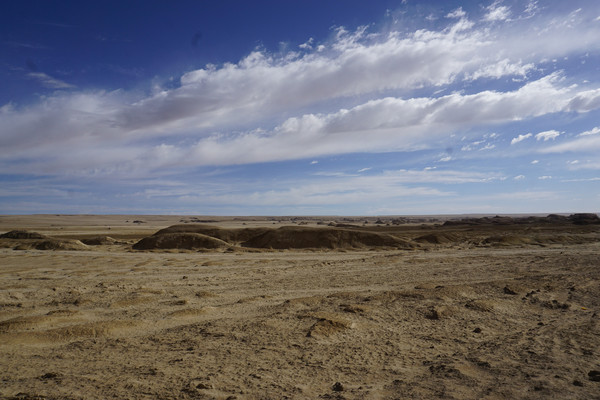 睡了一夜,高反症状消失了,又可以活蹦乱跳了~大柴旦明显比之前的城镇都干燥,早上起来嘴都起皮了。8点准时出发,去东台吉乃尔湖的路上,都是雅丹地貌,远远一片,很是庄观~