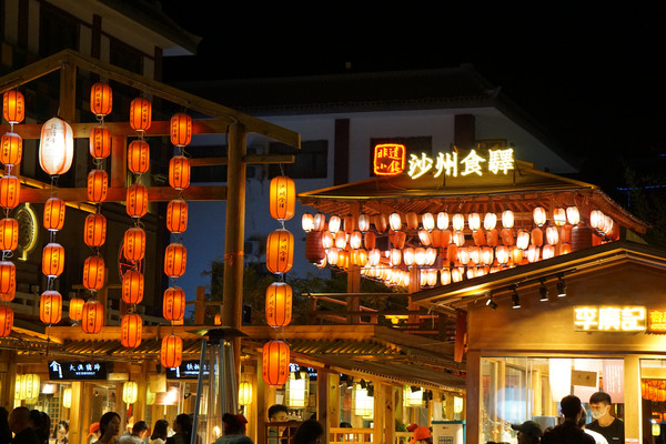 玩了1小时,继续出发赶往茶卡镇,入住宾馆,出门觅食