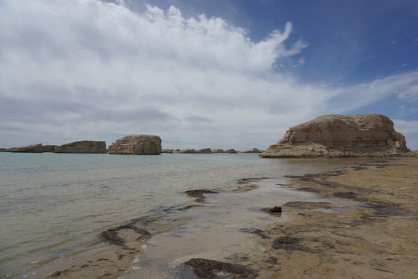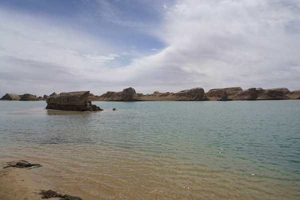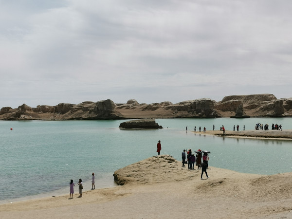 进入景区,先坐大巴到景区最深入,从里到外一站一站的下车玩,因为吉乃尔湖面抬升,逐步淹没北缘的雅丹群,形成了独特的水上雅丹,魔幻而神秘。据说水上雅丹这是全世界蝎子粑粑—独一份~