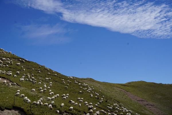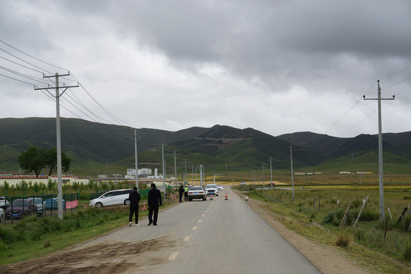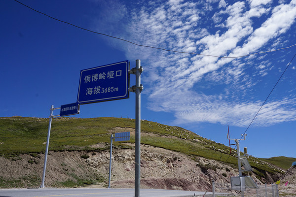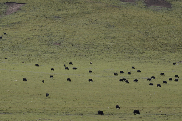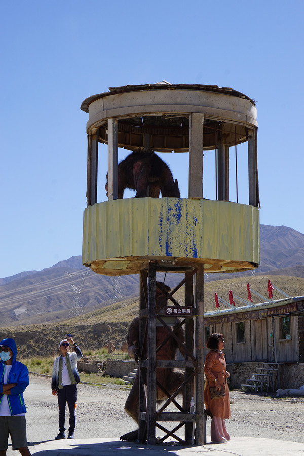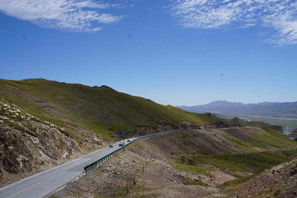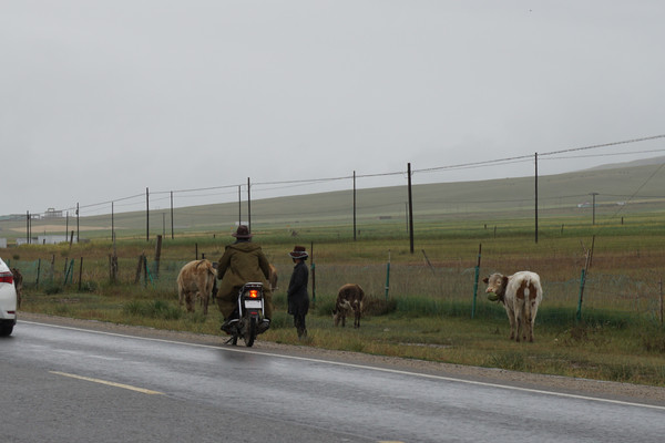 翻越拉脊山垭口,路上到处可见牛羊成群和收费的厕所(青海省统一价1元)