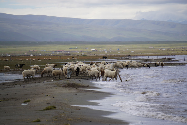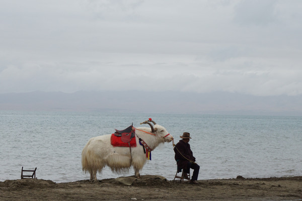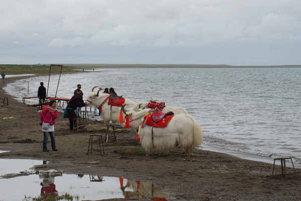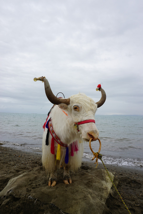 湖边到处是藏民牵着牦牛让游客拍照,下水20元,不下水10元。