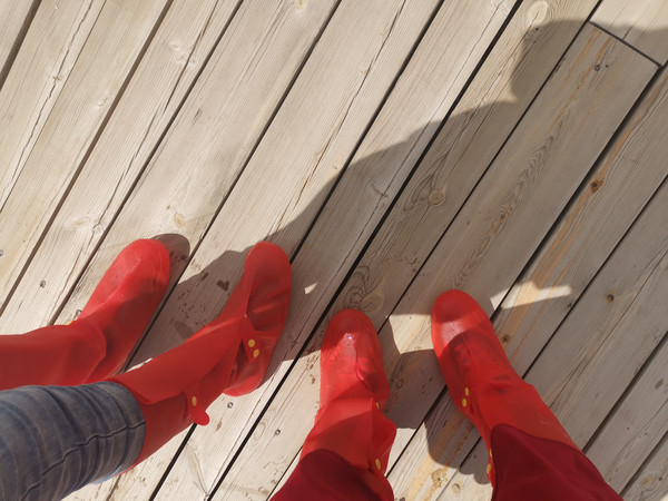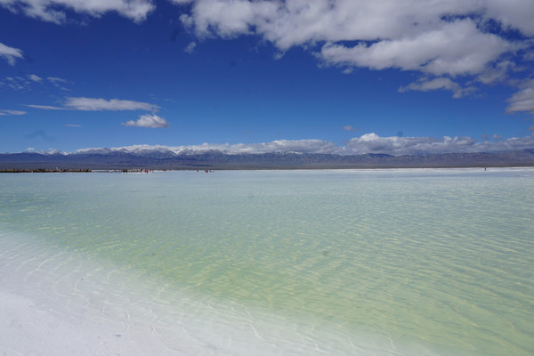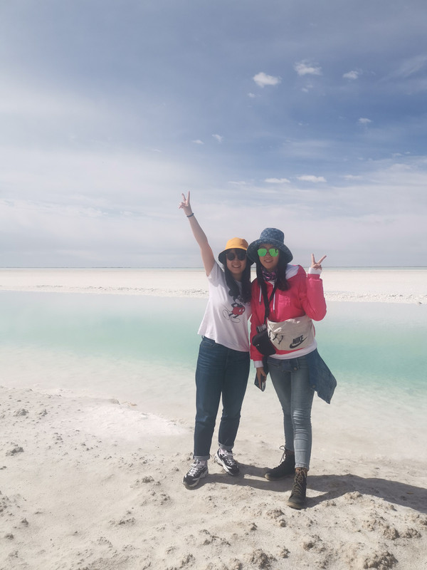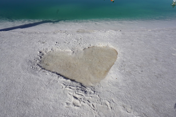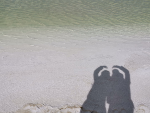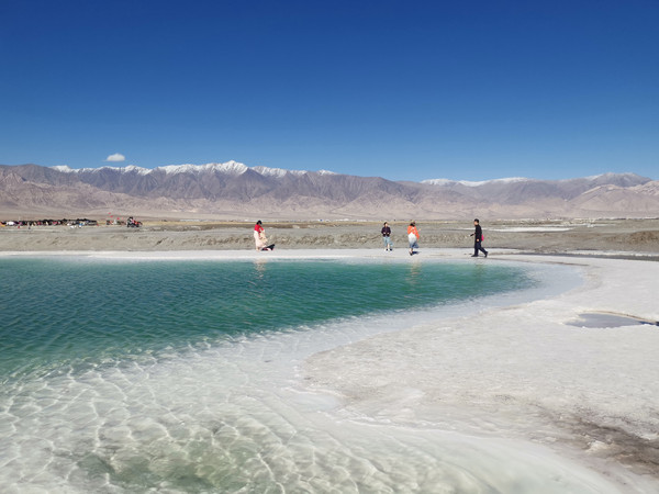 我们走走停停,终于找到一块人少的区域,租了鞋套(10元),下水拍照,不过一定要注意安全,盐湖里到处都是盐洞,光照太强,根本看不清照的怎么样,全凭感觉~