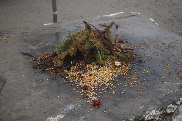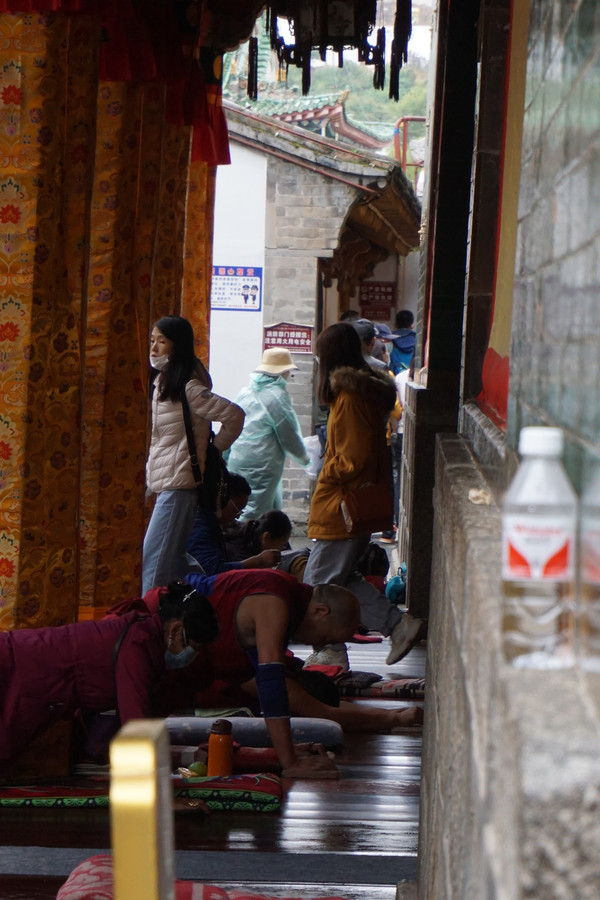 寺庙前的石墩上有藏族烧的松枝、大枣、酥油等等,应该是祈福祷告的东西。