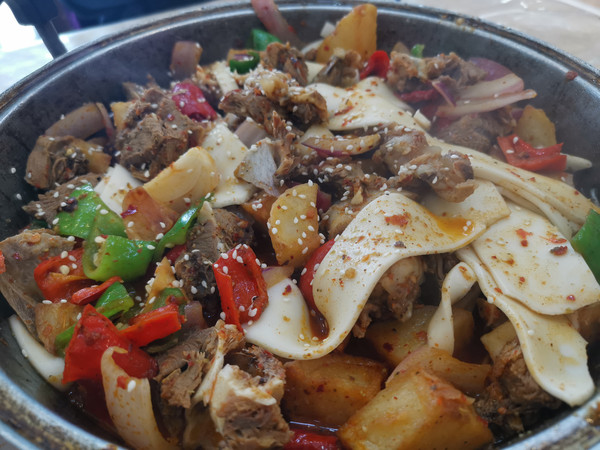 坑锅羊肉(188元)有点辣,配菜很好吃,但是肉有点不烂糊,应该是海拔高的缘故吧