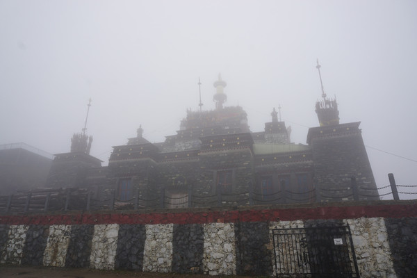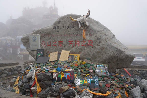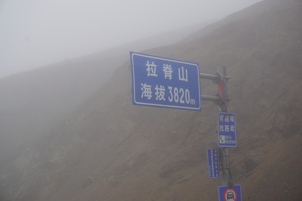 我们包了一辆SUV,司机带我们在盘山路上急驰,雾大的看不到路,提心吊胆的到了拉脊山的山顶,海拔3820米。雨丝不停的给面部做着补水,心慌耳鸣的症状都显现出来了。