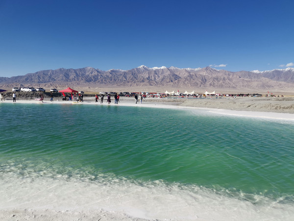 东台吉乃尔湖位于在格尔木市,柴达木盆地内,是一个以卤水为主的特大型锂矿床,因此也造就了东台吉乃湖蓝的令人心醉的景色。现在也是免费景点,网红马尔代夫,车子进去需要10元停车费。