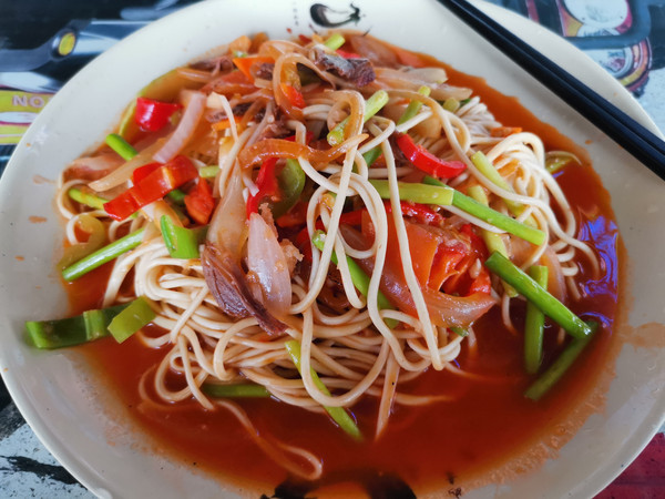 我们先在景区里吃了午饭,依旧是面条,我东北胃多多少少有点扛不住了
