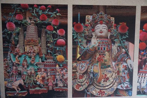 酥油花是由酥油配上各色颜料,塑雕成各种佛像、人物、花鸟走兽和亭台楼阁,游客可以在寺内的酥油花馆参观到精美的酥油花;在寺内主要殿堂、回廊、前廊等处,都能欣赏到很多颜色鲜艳的上百年的壁画,十分精美;堆绣是用各色的绸缎剪成所需要的各种形状,如佛像,鸟兽等,以羊毛或棉花之类充实其中,再绣在布幔上,在寺内大经堂内,两侧悬挂着“十六罗汉显神通”和“八仙过海”两组罕见的大型堆绣。