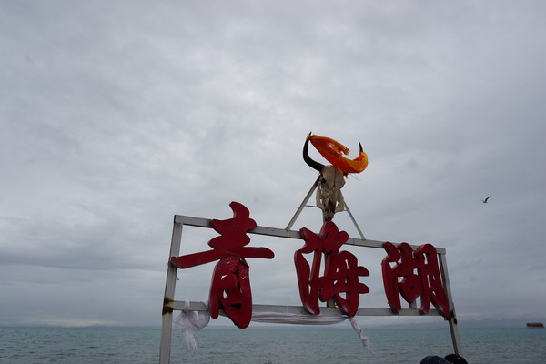 湖边感觉更冷了,由于阴天的关系,近看湖水不蓝了,传说中的青海湖让我有点失望