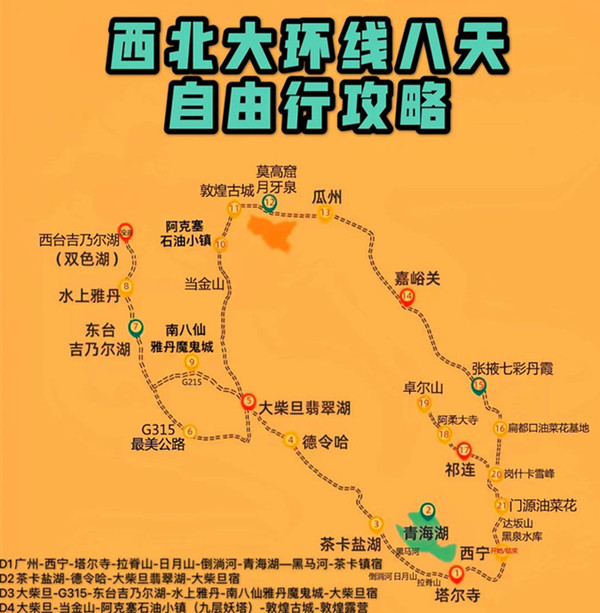 搜到一张地图,看看这几天的环线行程,差不多2800公里