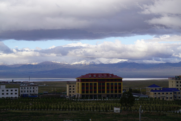 宾馆窗外的风景,连绵的雪山和湖泊~