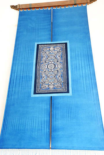 丹寨蜡染素有“东方第一染”的美誉,空中有苗族蜡染布高垂而下,令人爱不释手。这是酒店珍藏的一个特色蜡染布匹,据说价值连城,具有很高的收藏价值。