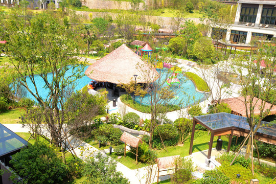 山水佳境,幽深静谧,犹如行走在森林中,为了创造一个有氧环境,万达真投入了不少真金白银。