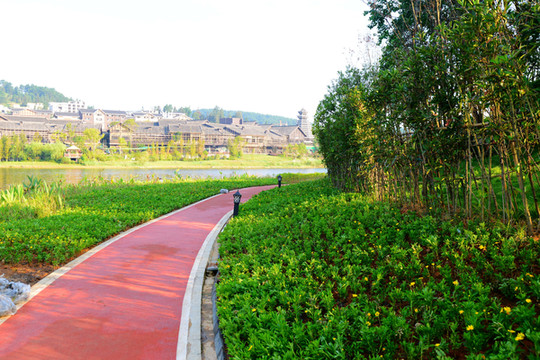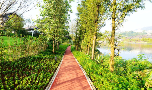 沿着3000米环湖栈道散步,处处好风光。