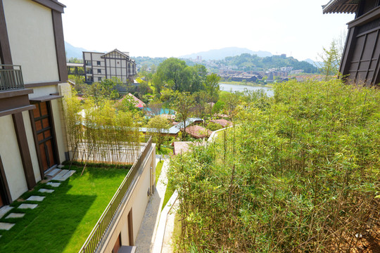酒店内外栽种不少竹子,意境清幽。