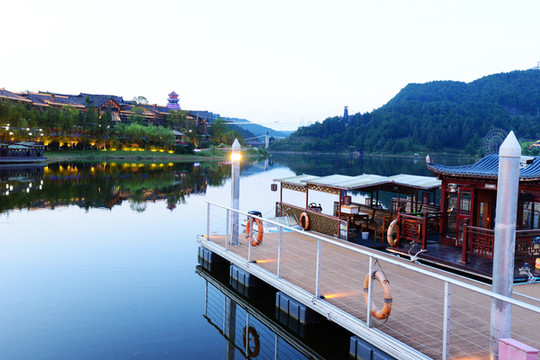 隔着湖看酒店,颇有几分电影《影》中的孤冷美感,大山深处有这么好个酒店简直是惊喜,这就是万达该有的样子。