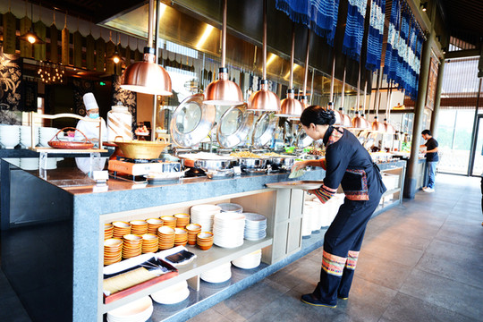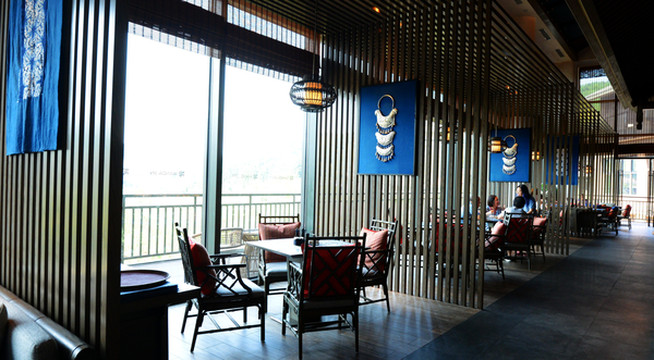 餐厅里充斥着蜡染、刺绣、造纸、鸟笼等当地非物质文化遗产元素,就餐之中能感受独特的民族文化。