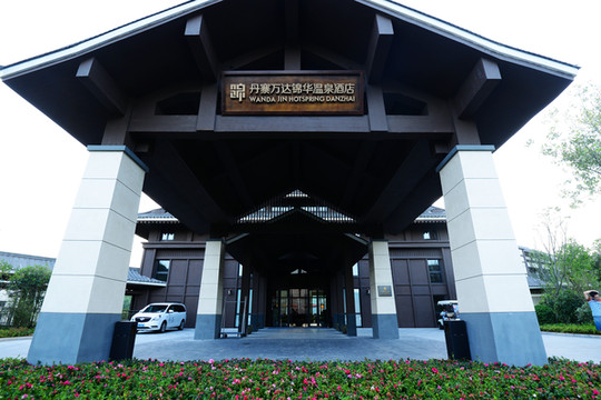 与一般的酒店不同,万达锦华温泉酒店的南侧开设了一家丹调图书馆,邻丹红小院,呈半弧形建筑。