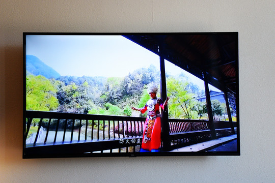 墙上挂着超清液晶电视,一键投屏,畅享完美娱乐体验。