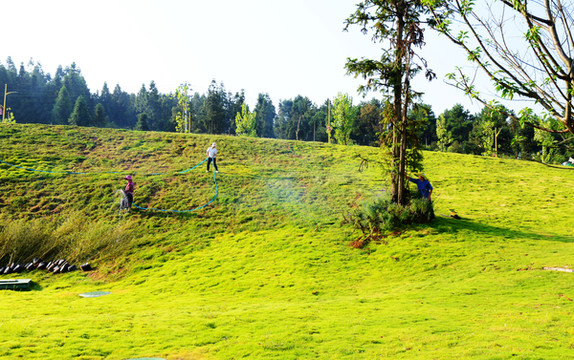 酒店不仅养活了两百多员工岗位,还解决了附近百多人来做园林工,民工们有的在栽竹子,有的在移植花草,难怪都说这里是万达对丹寨县的扶贫基地。