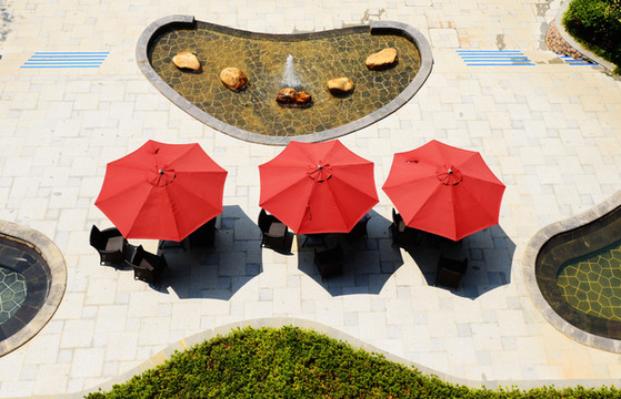 穿过大堂,来到后方,摆着多组藤椅,有水可看,有风可吹。