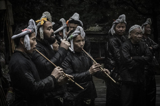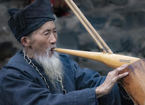 走上村口的台阶,就看到村子门口前的田埂上的苗族老者吹奏着芦笙,这种苗家纯朴的旋律伴随着旁边苗家妹子身上银饰的响声,仿佛走入另一个时空,与世无争怡然自得。