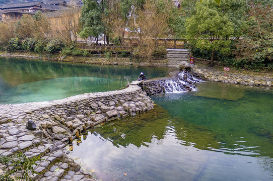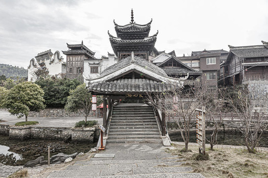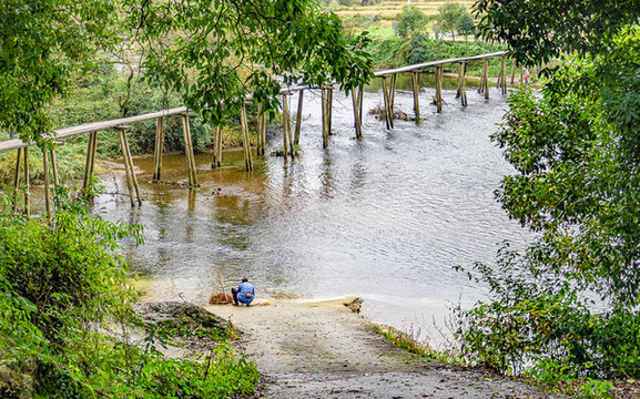 红军攻占黎平后在这里召开会议,重新确定了部队的前进方向,纠正了博古、李德的错误方针,是中国革命历程中的伟大转折点。黎平红军桥:村民进出村寨的唯一通道