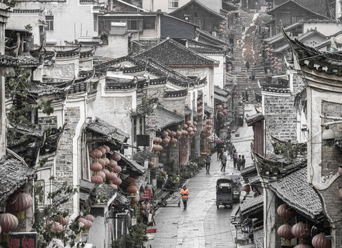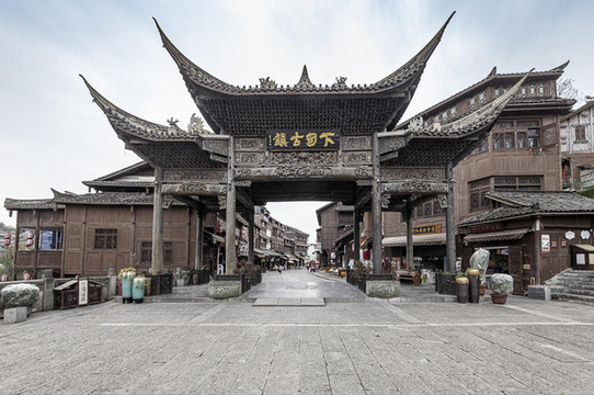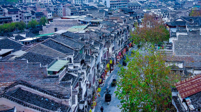 黎平翘街景区位于黎平县城所在地德凤镇,因翘街主街中段下凹,两端缓缓翘起,故称“翘街”。因它的形状,它也被称为“扁担街”。