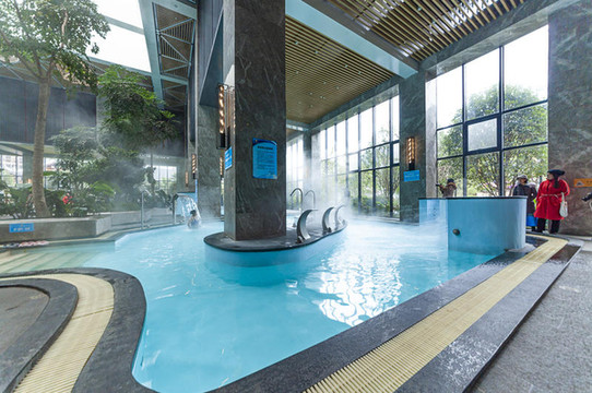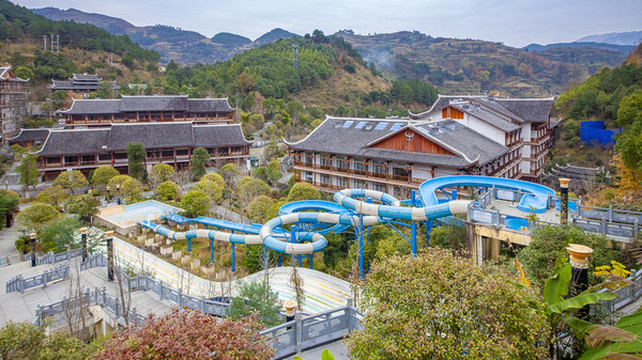 剑河苗乡的圣水温泉城被青山环绕,远远望去,树木葱茏,青翠欲滴。一站式服务,可以满足餐饮、住宿、娱乐、娱乐、休养等需求。