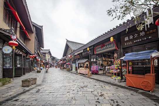 其建筑风格为青砖黛瓦、高封火墙、飞檐翘角、雕梁画栋,每一块青石板、每一块青砖都记载历史遗迹,泣诉着千年古镇的沧桑。