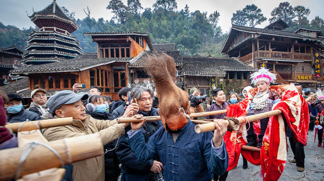今天是肇兴侗寨的侗年第一天,“抬官人”是今天最热闹的一个项目,是侗族人非常喜爱的传统文化活动。