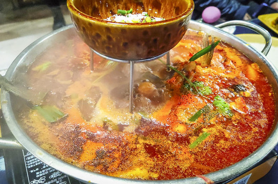 凯里酸汤鱼黔东南有句名言叫“三天不吃酸,走路打捞蹿”。酸汤类菜肴,在黔东南自治州各县市、各民族都很盛行,尤以凯里市区最为典型,故外界统称为凯里酸汤鱼。其实,做酸汤火锅的酸汤,分苗族白酸汤和侗族红酸汤两类。现已发展成为酸汤系列饮食,如酸汤鸡、酸汤鸭、酸汤狗肉、酸汤羊肉、酸汤牛杂、酸汤大鱼头、酸汤猪脚、酸汤大肠、酸汤排骨、酸汤螺蛳等。