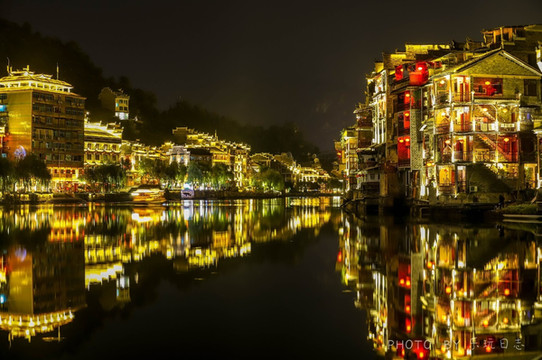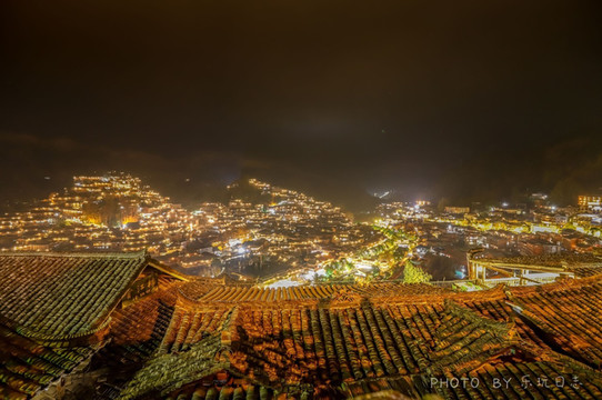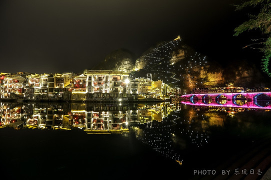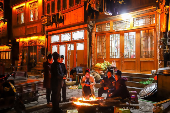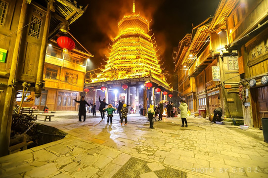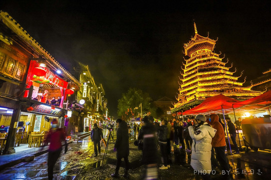 到了晚上,华灯初上,侗寨又进入了另一种美。